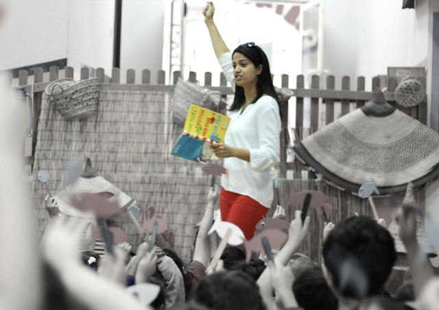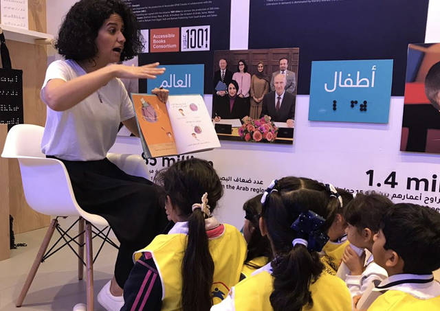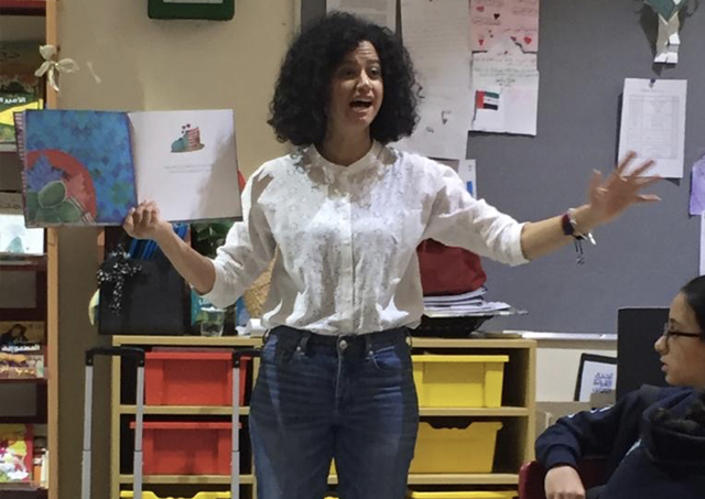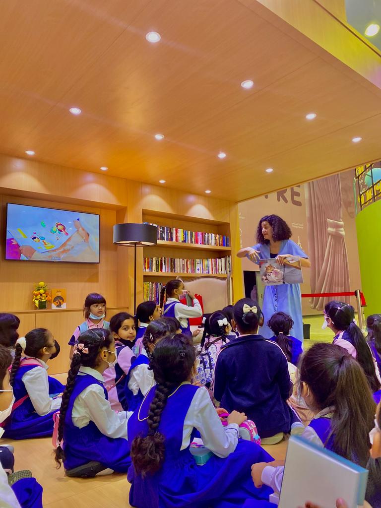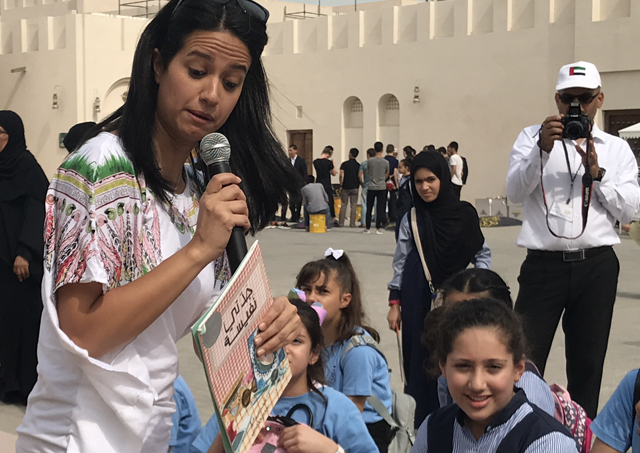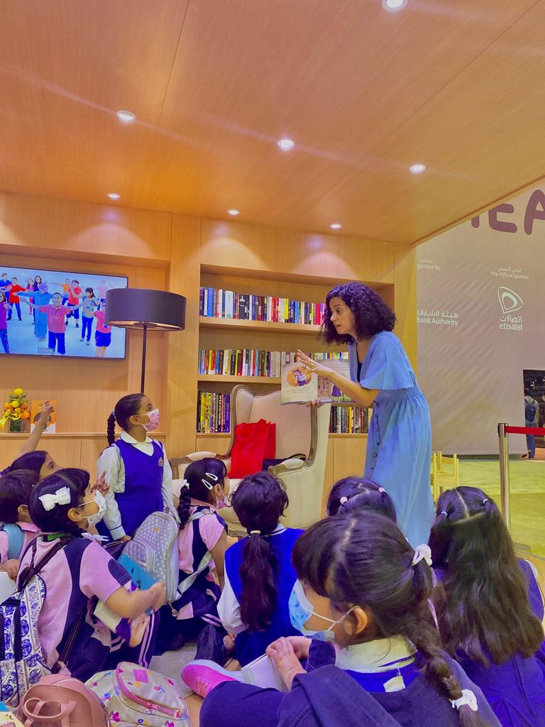 As part of their activities at the Sharjah International Book Fair, I read two books to many schools visiting Kalimat’s Publishing pavilion.