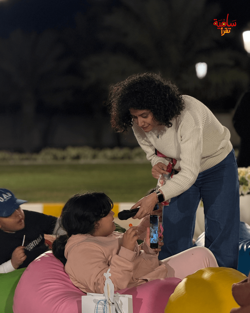 At the Sharjah International Book Fair, I had a casual reading with the Tamer Institute for Community Education, followed by a coloring activity.